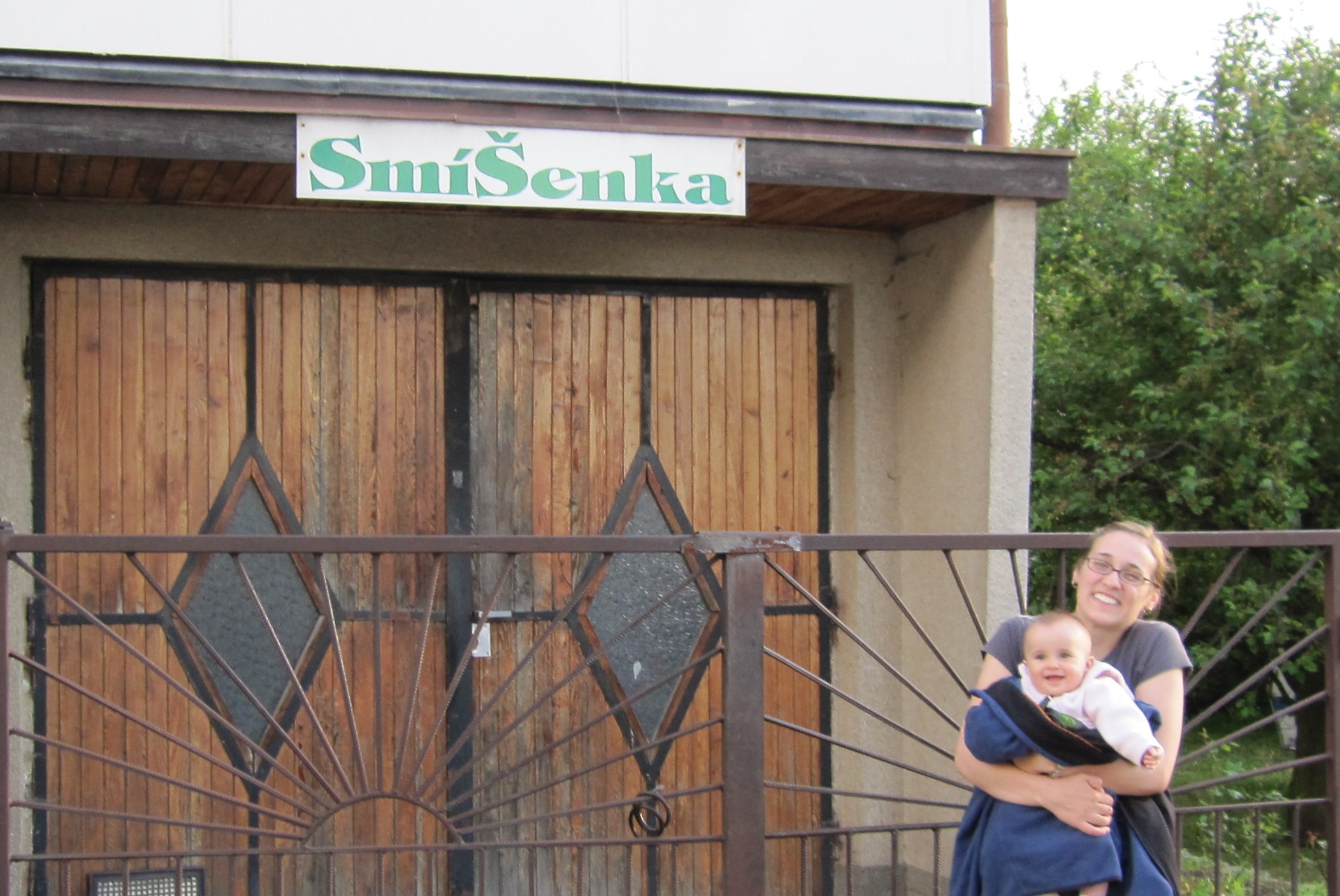 My uncle always called Katelyn smisek, which roughly translated means smiley face. Near my uncles house we found this house that had this sign so we took a picture next to it.